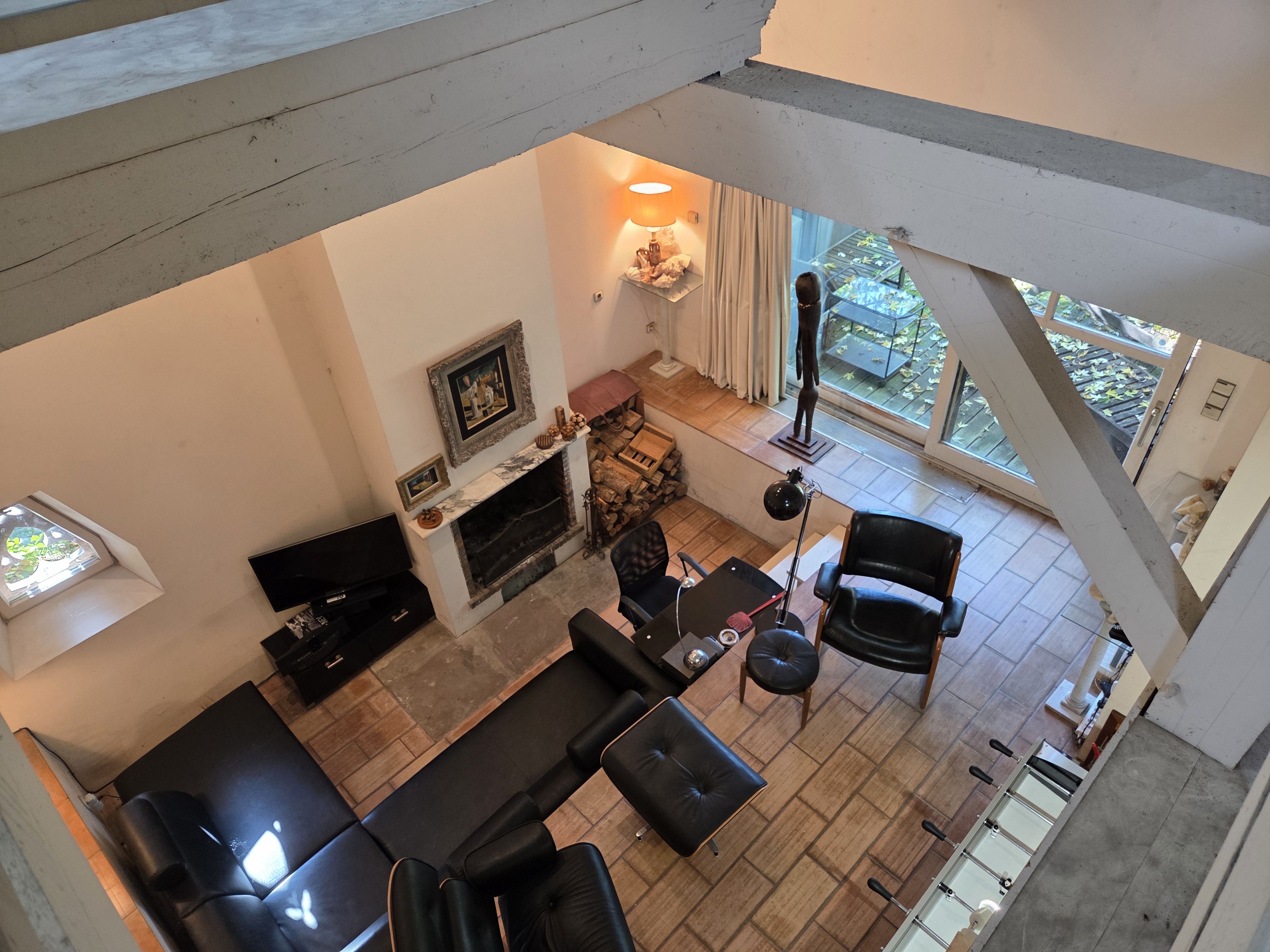 l'étage dessert une grande pièce pouvant servir de chambre ou de bureau, et une grande chambre.